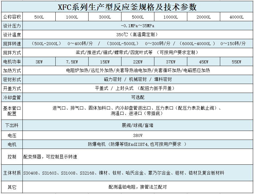 根據工藝要求:生產容積100L---50000L